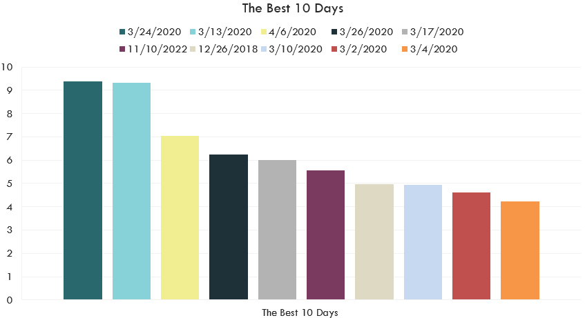 Bottom line? Staying invested through market turmoil is crucial, as many of the “best days” happen during or shortly after major sell-offs.
