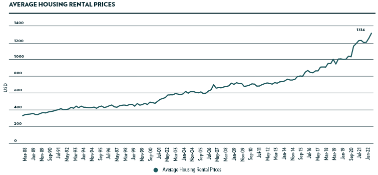 Source: Bloomberg LP, Median Asking Rent In The United States, 3/31/1988 – 6/30/2022