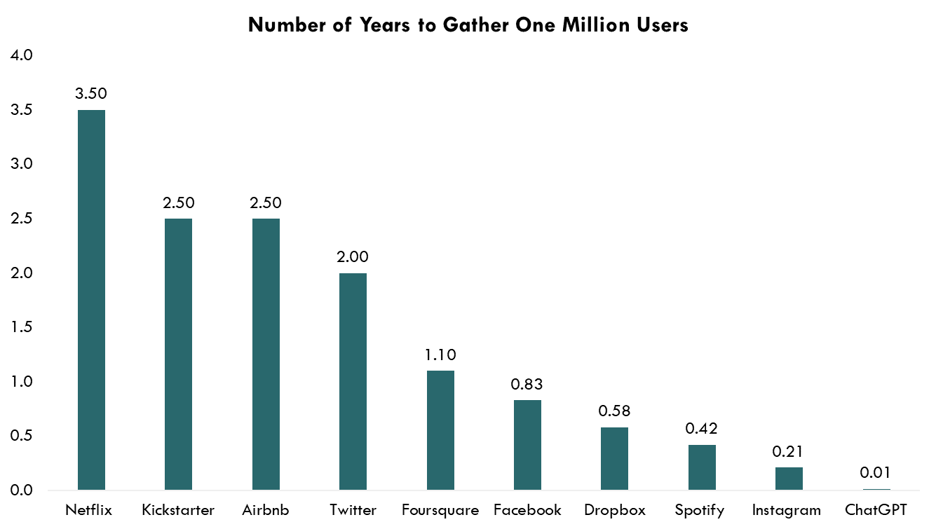 Could this time be quicker? Absolutely. As shown in the chart below, adoption of AI has already been significantly faster. Language processing platforms such as Chat GPT have gained adoption faster than any other online service in history…but that doesn’t mean economic benefits will come right away. And with a US economy already showing signs of fatigue, they are unlikely going to be realized in time for AI to be the savior.